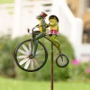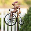 It only takes a slight breeze to get the wheel spokes to spin, and the driving animal's jointed legs move along as if he's pedaling.