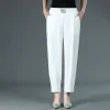 Natural linen slim fit casual pants are not deformed, fresh and breathable, easy to clean, quick drying, elastic waist.