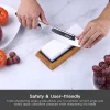 These premium quality whetstones require no oil, and come with a flattening stone, a blade angle guide, a no slip bamboo sharpening base.