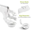 The automatic egg cracking gadget is made from plastic injected molding along with stainless steel blades that separates the egg shell. It has a hole on the end of the handle to easily hang it in your kitchen, and an ergonomic handle makes it super quick and easy to use.