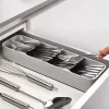 Individual, stacked compartments for different cutlery. You can place them as you like.
