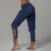 - Plain colour loose yoga harem pants with ballet straps at the lower part of the legs