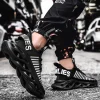 Bold Letter pattern on the heel straps and tongue pull tabs