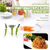 3 IN 1 PACKAGE - The triple slicer combines 3 blades to make the perfect cutting, peeling, shaving, shredding and grating utensil. Able to peel things into different shapes according to your need.