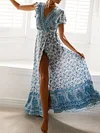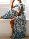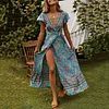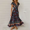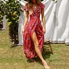 New Bohemian Big Pendulum V-Neck Beach Holiday Tie Printing Maxi Dresses.MC