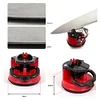 It is designed with a strong suction cup and ergonomic handle that work together to keep the sharpener in place.