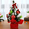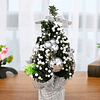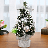 The tree is green, the leaves are painted with white paint, and it looks like it has just snowed. The tree has various red decorations and bows on the top. It looks very beautiful and is very suitable for Christmas party decoration.