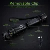 Powerful led flashlight with 5 modes: Full, Medium, Low Brightness, Strobe & SOS, you can switch at will, adapt to different environments of lighting. In addition, the zoomable function is more practical, spotlight for long range observation and floodlight for large area illumination.