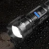 Hold the long and wide flashlight body in your hand and experience the comfort of holding it. High lumens flashlight can generates an ultra-high output up to 12000 lumens, sweeps bright light over the length of about two football fields and reaches nearly 550 yard.