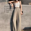 The pleated design well conceals fat on the leg, making your leg look slim and slender. Wide straight leg, lost fit Suitable for all women.